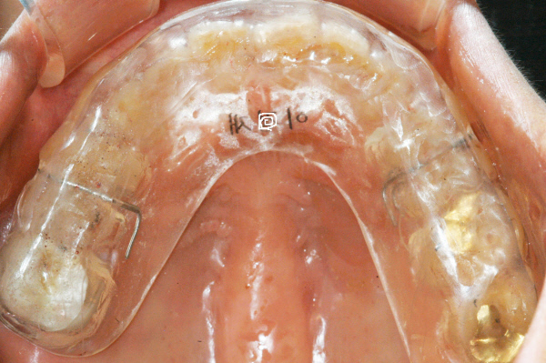 구강내 아래턱 치아에 착용한 CBK스플린트. 정기적으로 치과에서 미세한 조정을 받아야 완벽한 교합 안정이 이뤄진다. 교합이 틀어지면 근육의 왜곡이 일어나면서 두개골이 틀어지고, 뇌와 척수에도 영향을 미치게 된다. 즉 치아가 마모되고 틀어지면서 그 영향을 두개골에서 같이 받고, 이것이 전신건강과 면역시스템에도 영향을 주게 된다는 게 최 원장의 설명이다.